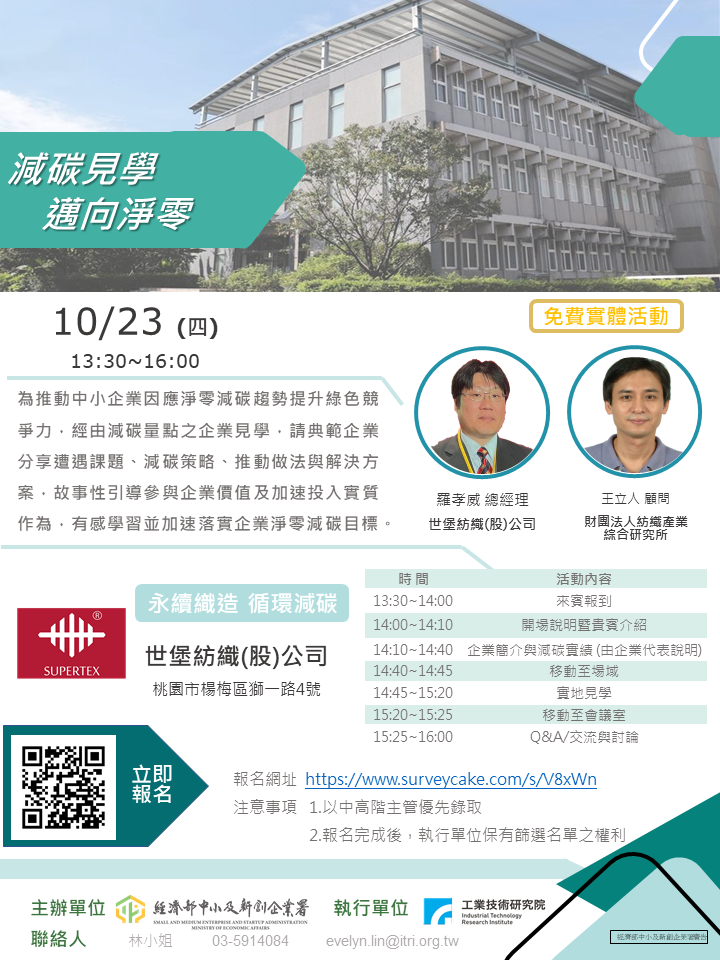 [代發]10月23日 世堡紡織-企業減碳見學活動